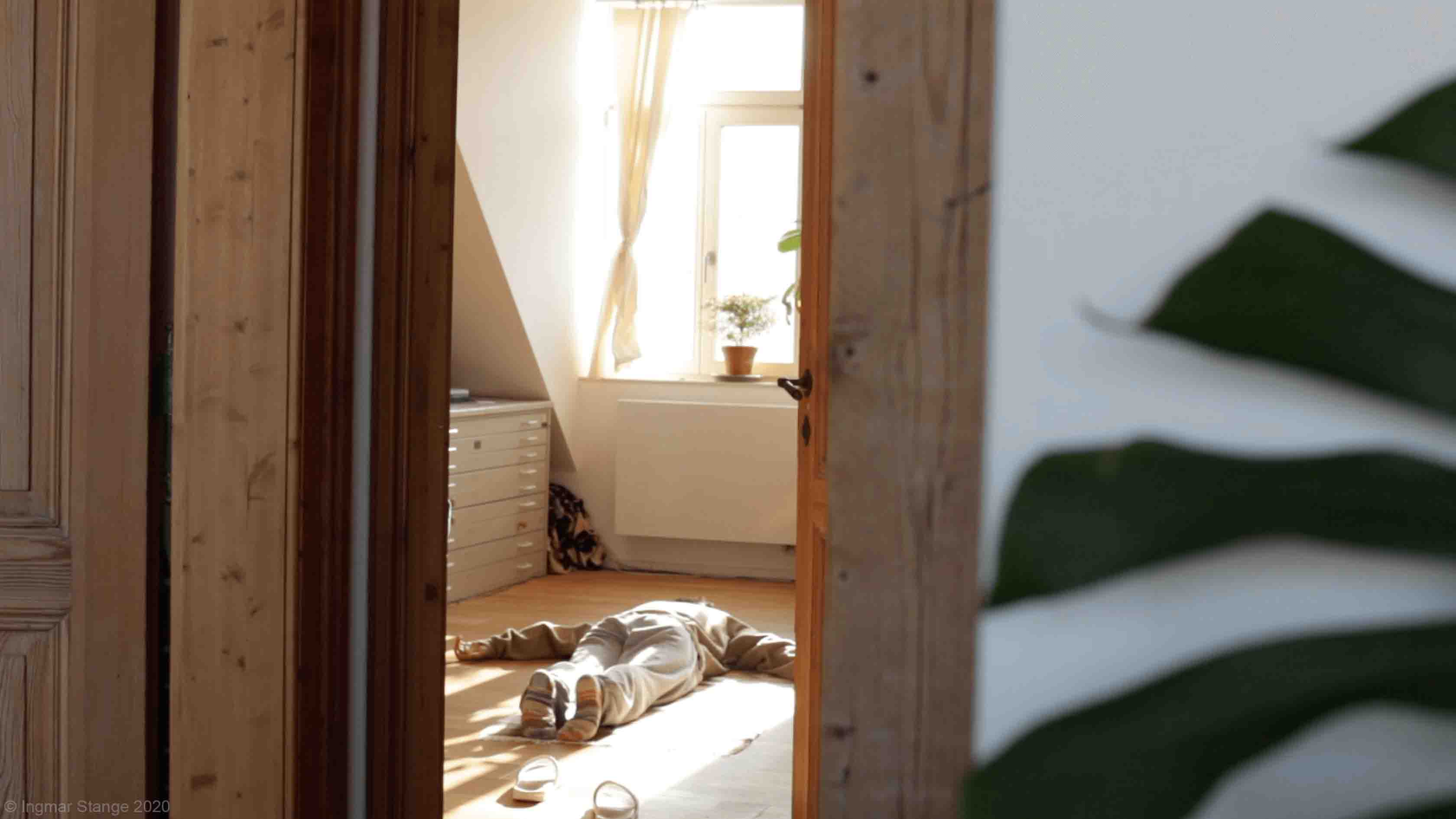 Ich befinde mich in einer Krise. Zuneigung und Gemeinsamkeit sowie bestehende Verhältnisse sind zerstört. Plötzlich kommt der einschneidende Anruf vom Gesundheitsamt und die Ansage: Quarantäne. Eingesperrt Zuhause ohne Kontakt – allein. Auf einmal wird die Wohnung immer fremder, das Vertraute wird zum Feind. Aus einer Beobachtung der architektonischen Strukturen der vier Wände werden Träume und Realitätsverlust.