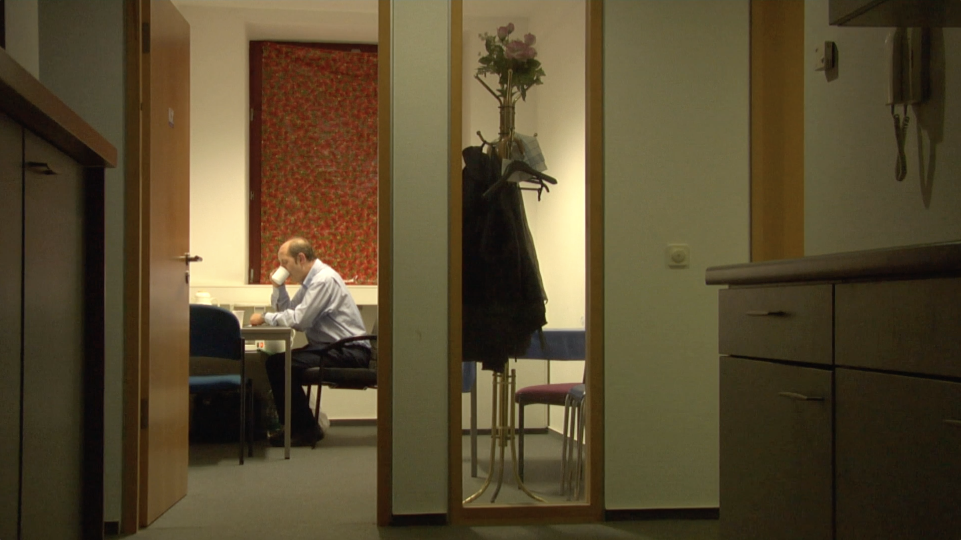 Uwe Neumeister ist Wachmann, er bewacht in einer dreizehnstündigen Nachtschicht einen großen Bürokomplex als Teil einer Wach- und Schließgesellschaft. Ich habe ihn mehrere Nächte lang begleitet und mit ihm über das Leben gesprochen. Die Nacht besteht aus vielen stillen Runden, vollen Tassen Kaffee und endlosem Warten. Der Film erzählt in eine visuell-