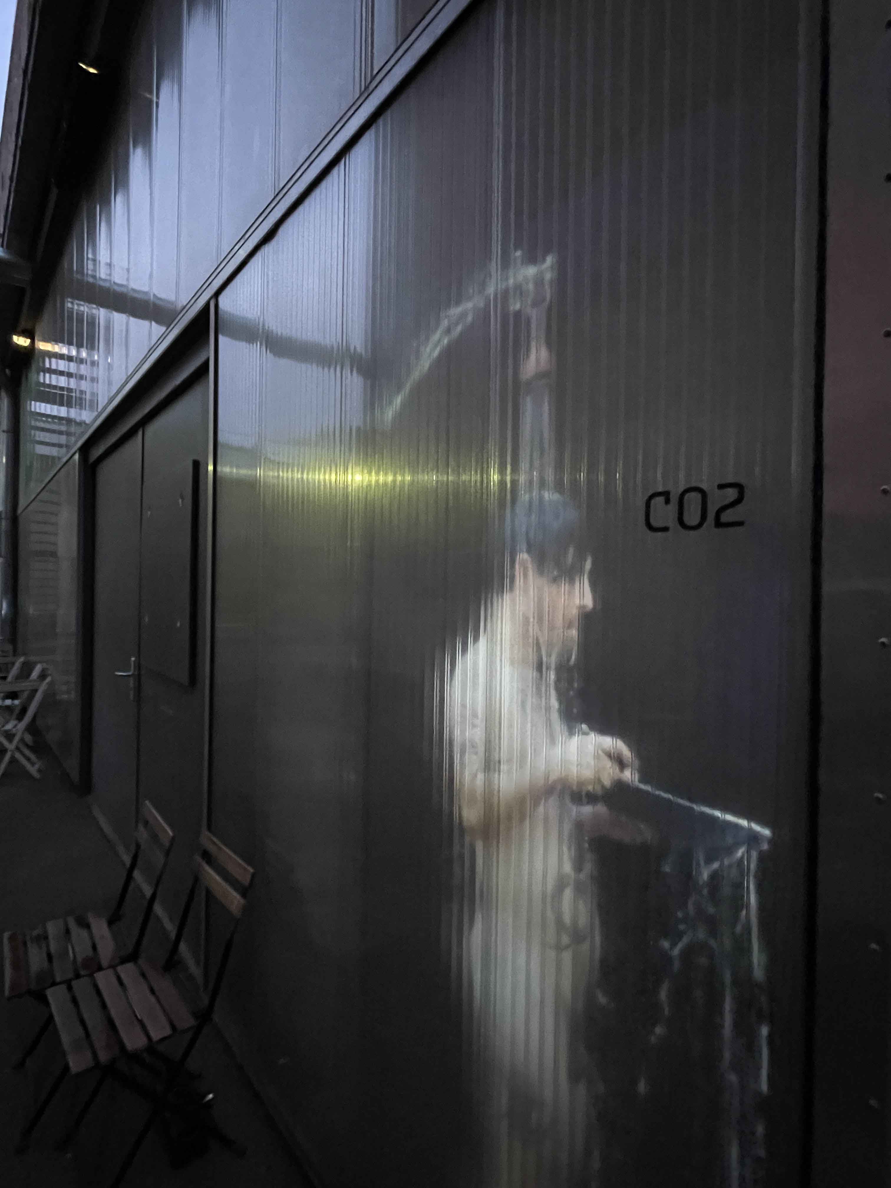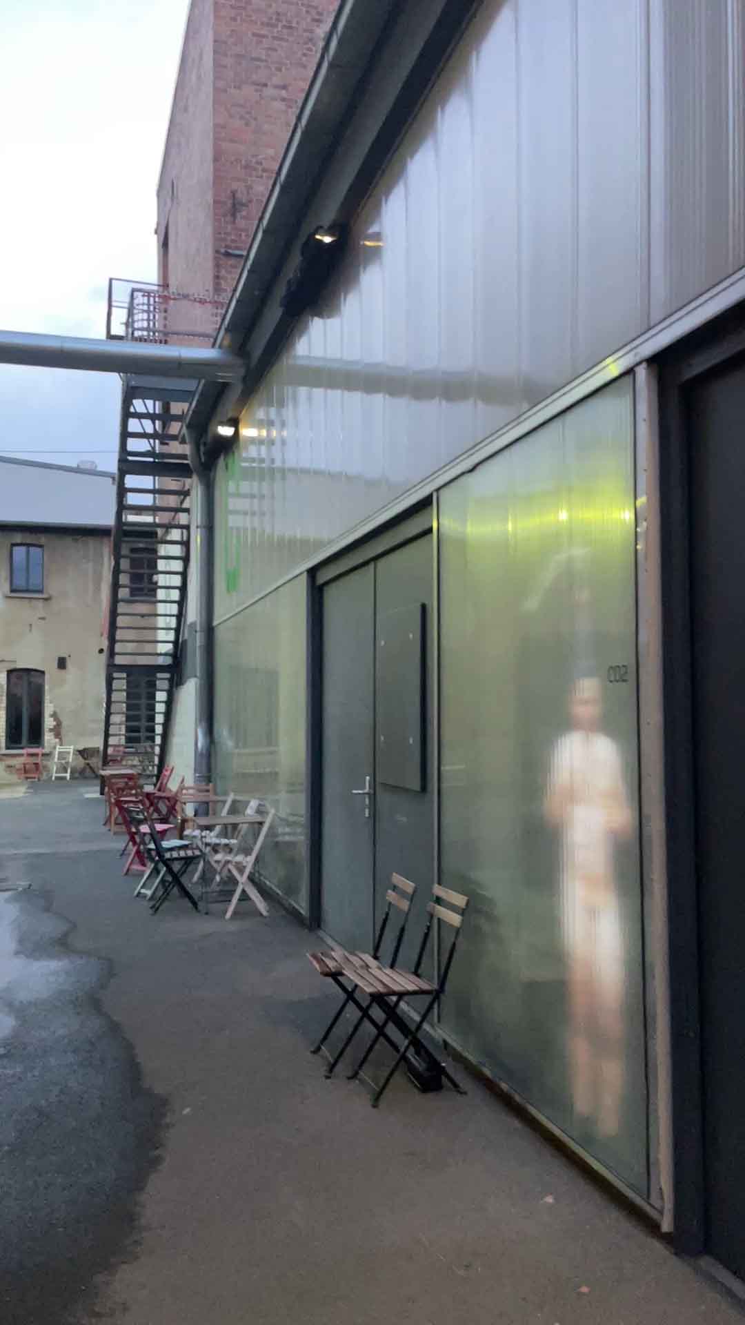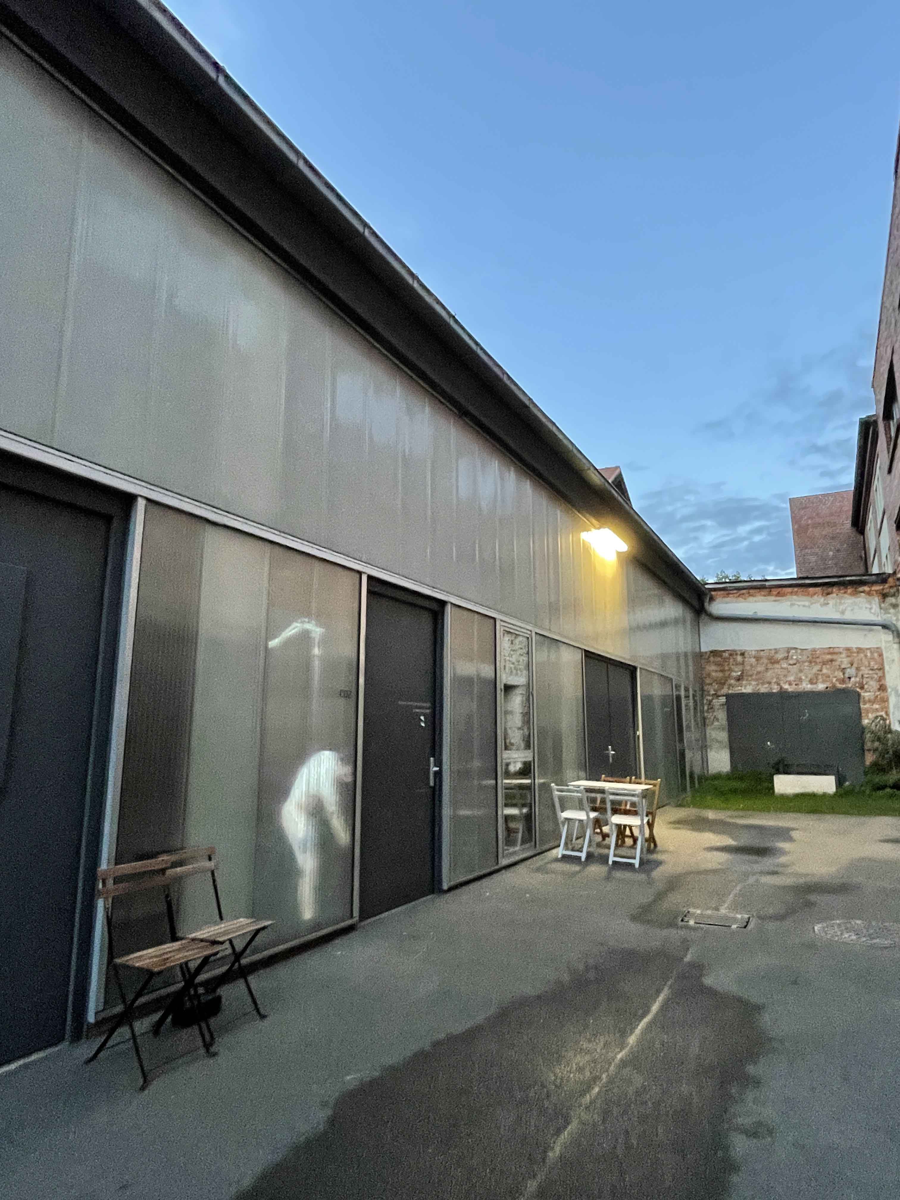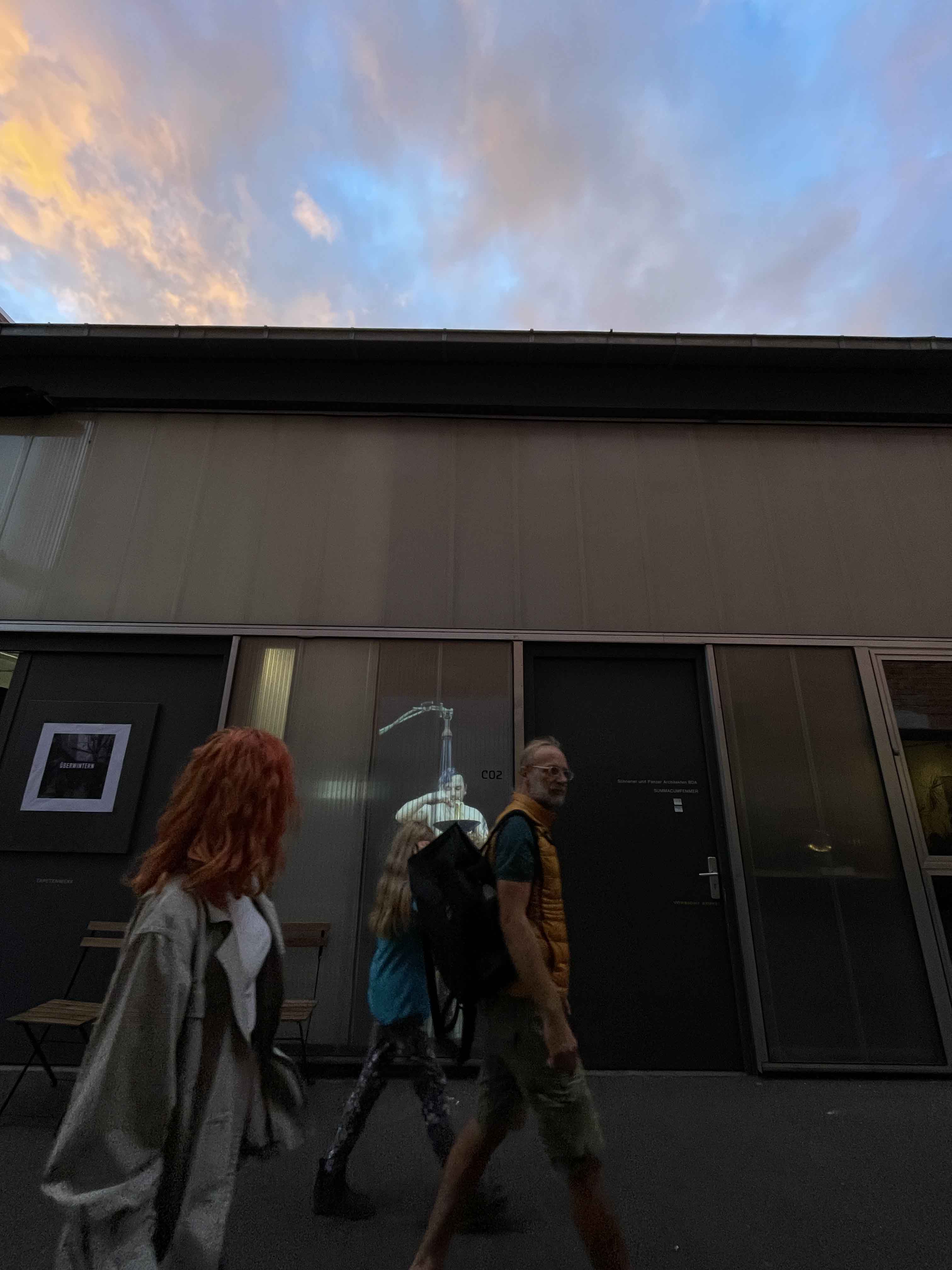 Die lichtdurchlässige Fassade des Architekturbüros Schoener und Panzer dient als Projektionsfläche für alltägliche menschliche Handlungen. Gebauter Raum und sich bewegende Körper, Schutz und Intimsphäre, Körperlichkeit und Materialität werden in gegenseitige Beziehungen gesetzt. Die Arbeit entstand gemeinsam mit Lutz-Rainer Müller und dem Architekturbüro Schoener und Panzer und wurde auf dem Rundgang im Leipziger Tapetenwerk 2022 gezeigt.