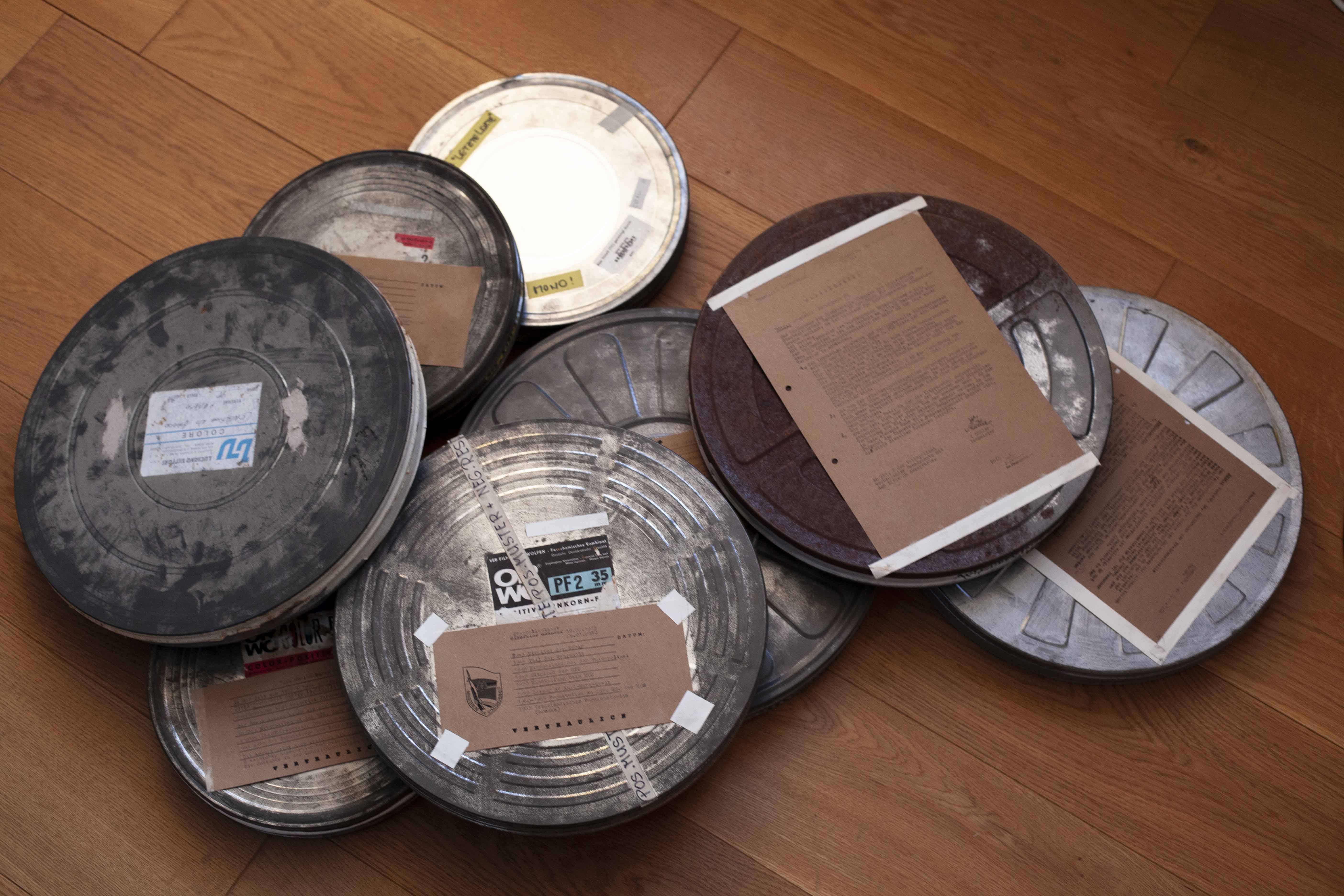 Installation | Drucke mit Schreibmaschine beschrieben 16mm/35mm Filmdosen | 2019